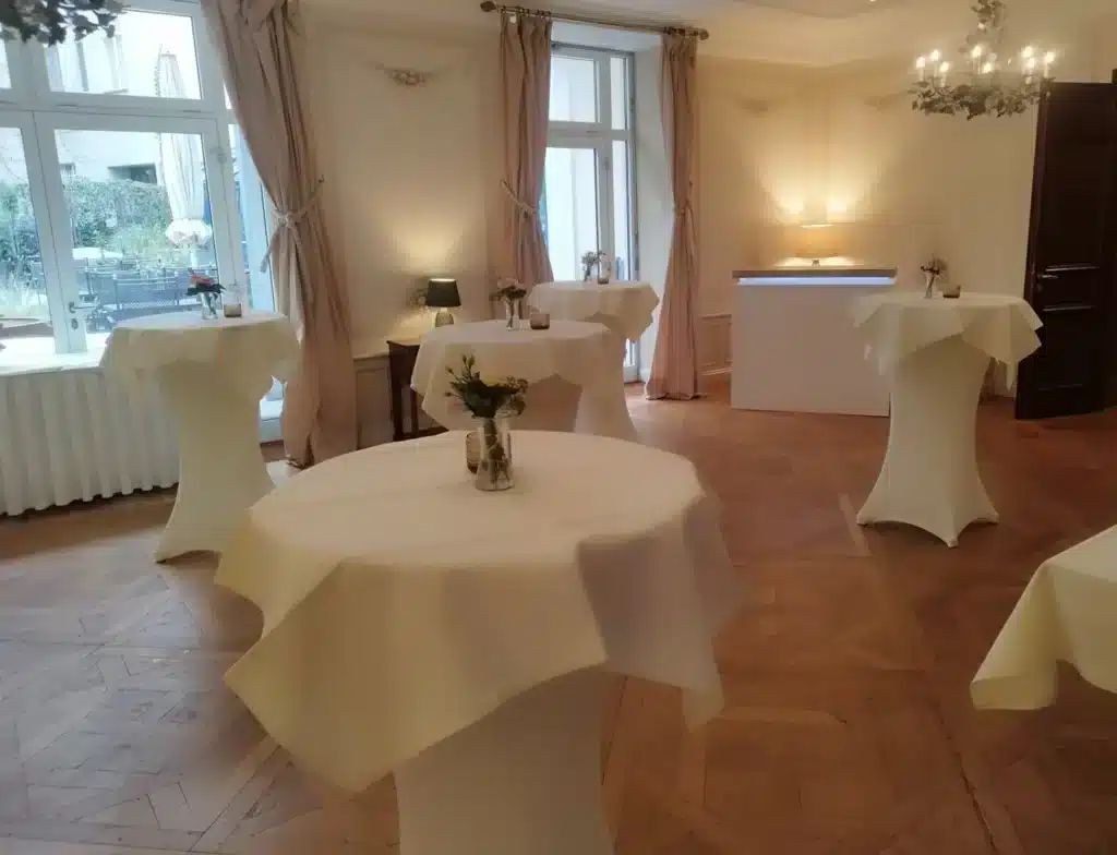 Personen: 24 / 30 bei Stehempfang (Stehtische)